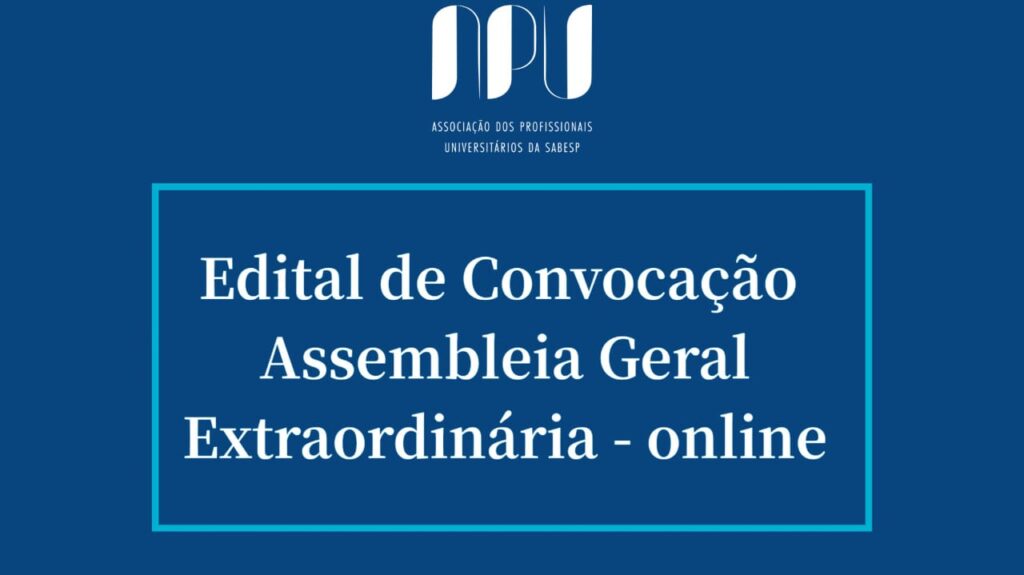 Ficam convocados todos os associados da APU para a Assembleia Geral Extraordinária, que será realizada no dia 13 de abril de 2023, por meio de endereço eletrônico, que será enviado por e-mail ou sob consulta à Secretaria nos próximos dias. A primeira convocação acontecerá às 16h, com presença da maioria dos associados, e, em segunda convocação, às 16h30, com qualquer número de associados, para deliberar especificamente sobre a alteração do Estatuto Social da entidade, cuja proposta será encaminhada por e-mail ou poderá ser obtida na Secretaria.