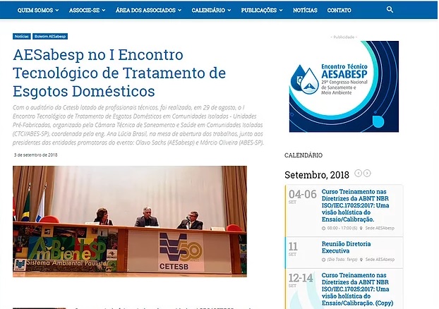 Para obter mais informações acesse: http://www.aesabesp.org.br/2018/09/03/aesabesp-no-i-encontro-tecnologico-de-tratamento-de-esgotos-domesticos/