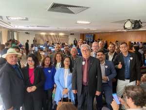Trabalhadores urbanitários estiveram representados por seus dirigentes Em coro na defesa dos decretos do saneamento 11.466 e 11.467, editados pelo governo em abril, dirigentes sindicais