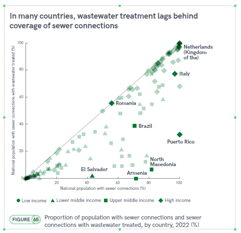 Um comentário que pode ser feito sobre esse progresso no tratamento de esgotos é certa contradição com relatório recente do monitoramento dos ODS3, que destaca o Brasil no gráfico a seguir: