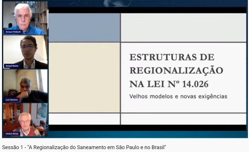 Amael Notini Moreira Bahia apresentou as estruturas de regionalização na Lei nº 14.026/2020, pontuando suas modalidades. Amael explicou, ainda, a diferença entre regionalização e prestação regionalizada. O palestrante comentou sobre o fato de São Paulo, assim como outros estados, estarem tomando iniciativa própria para promover a regionalização a seu modo. Ele afirmou que, antes de se estabelecer os prazos, era necessário que a União tivesse assegurado aos estados os instrumentos para se poder otimizar a regionalização.