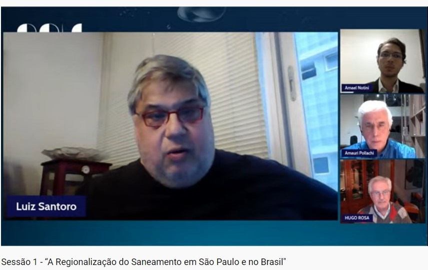 Hugo Marques da Rosa falou apresentou as oportunidades e riscos para o saneamento paulista, citando a nova legislação. Ele enfatizou que saneamento e recursos hídricos devem ter um tratamento, em termos regionais, semelhantes. “Quando falamos em regionalização, também temos que pensar em mudanças climáticas, pois, a expectativa é de que teremos cada vez mais escassez de água. Apesar de termos aparente boa disponibilidade de água na região metropolitana de São Paulo, a gente sabe que a disponibilidade per capita é uma das menores do Brasil. Qualquer coisa que se faça em termos de saneamento, tem que levar em conta as bacias hidrográficas e a disponibilidade dos recursos hídricos, não só de hoje, como do futuro”, destacou Hugo Rosa. Para acessar o debate completo, clique aqui.